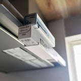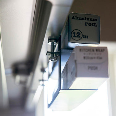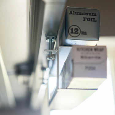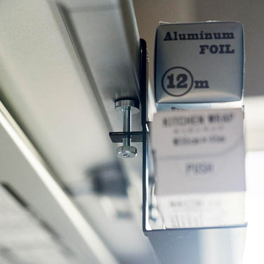 It's convenient to quickly grab when you need it. You can store cling film or aluminium foil in two separate levels. Secure it firmly to the range hood with the adjustable screw.