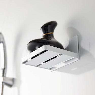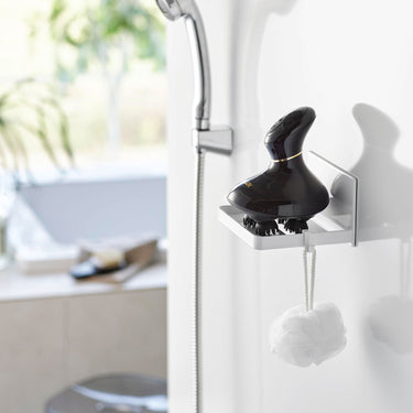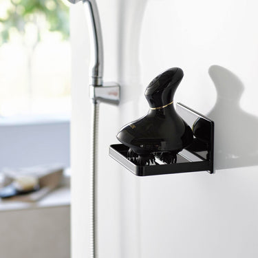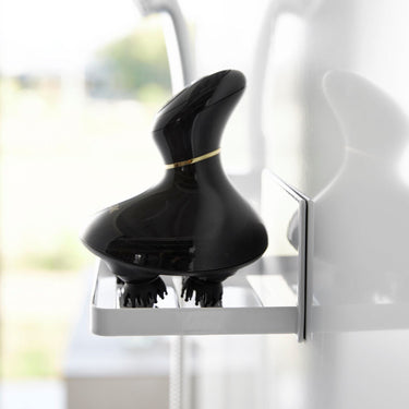 This is a rack for storing your waterproof scalp massager that can be used in the bath. It can be easily installed on the wall of your bathroom using magnets. It's also perfect as a designated spot for your beauty items used in the bath. You can install items you don't want to get wet in a position where they won't be hit by the shower, so it's worry-free. It's sized so that you can remove parts and let them dry, and you can also use it to place items like speakers. It comes with hooks for hanging small items.