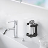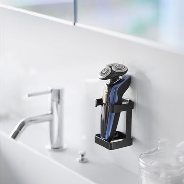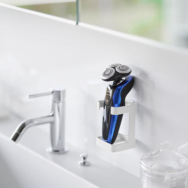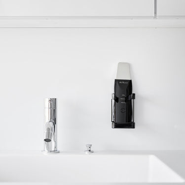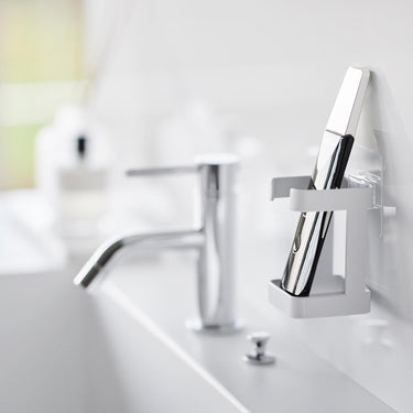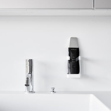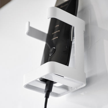 This rack allows for hygienic storage of your facial goods by keeping them elevated. It can even store items while they're still wet after use. Since they're kept off the surface, there's no need to move them when cleaning your vanity unit - how convenient! It's perfect for storing electric shavers, daily beauty devices, and toners. Another handy feature is the ability to plug in power cords while items are still stored. Installation is easy - just stick on the film hook and hang the main unit.