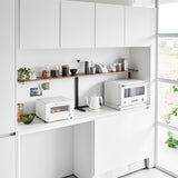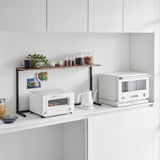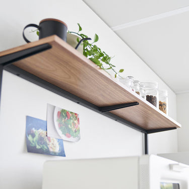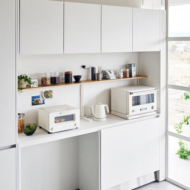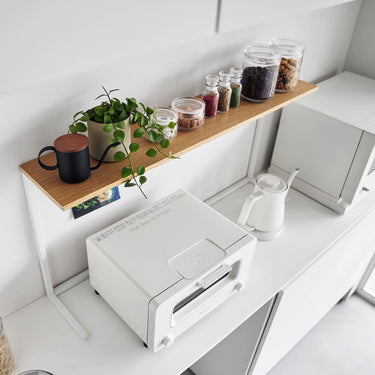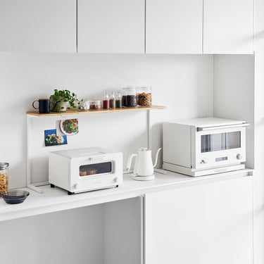This shelf allows you to make effective use of the space above kitchen appliances like microwaves. Its minimalist frame design blends seamlessly into your kitchen. With a depth of 18cm, it's perfect for displaying and storing dishes and kitchen tools. It's sturdy with a load capacity of 7kg. Easy to install, simply place it on top of your kitchen cupboard - no need to drill screws into the wall.