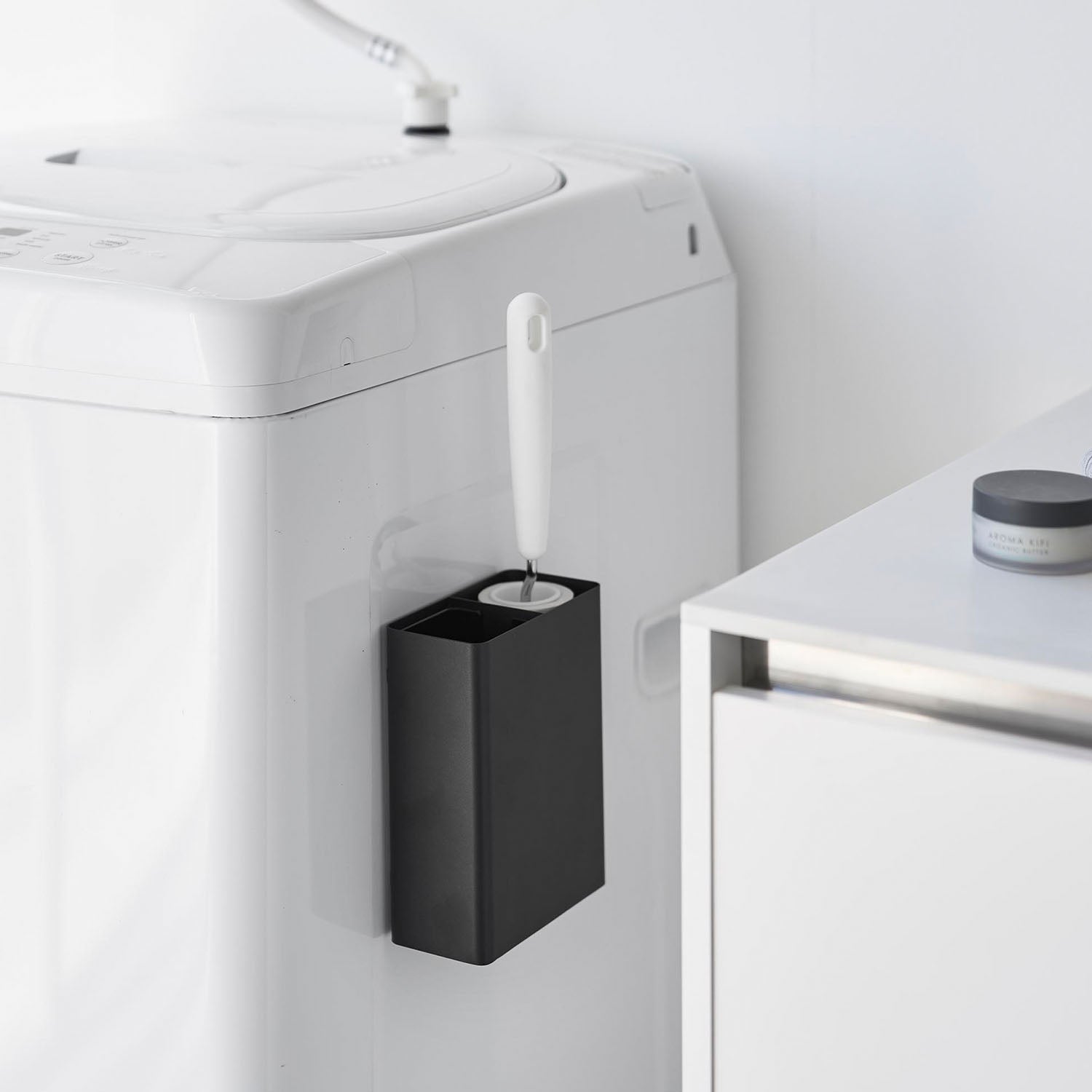 Easily attach to your front door or washing machine with a magnet! Adhesive cleaner stand & dust box