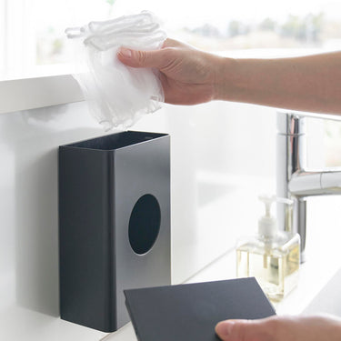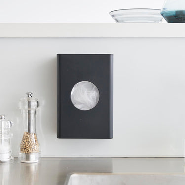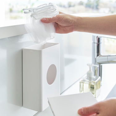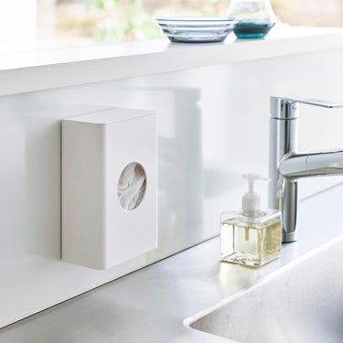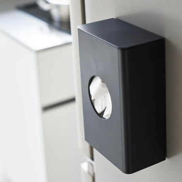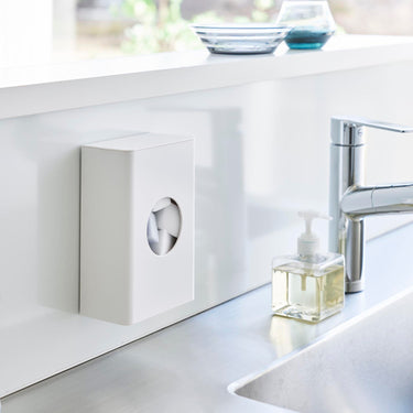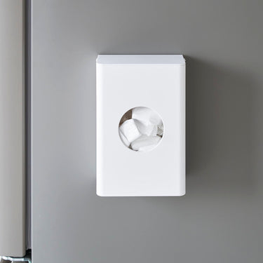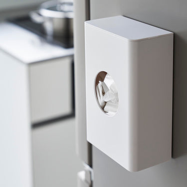 This handy holder allows you to quickly grab your frequently used dish drying net from the central round window. If installed near the sink, it makes changing the drying net a breeze. It can be easily attached to kitchen panels or refrigerators with magnets. Its simple and compact design allows for smart installation anywhere. It's also recommended for storing cut sponges or plastic bags. You can easily refill it by opening the lid while it's still attached to the wall.