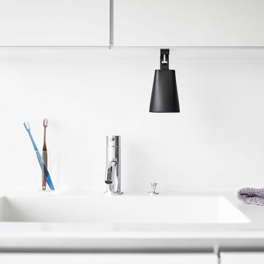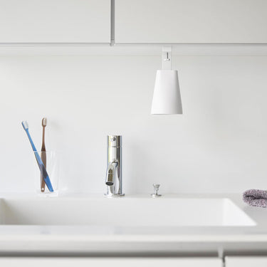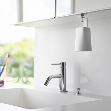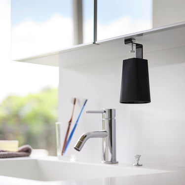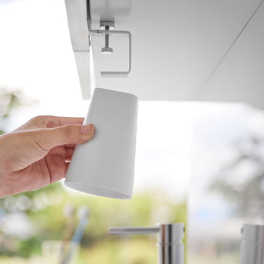 This tumbler can be stored suspended under your bathroom cabinet. Because it's suspended, it dries quickly and is hygienic. The holder can be installed on a cabinet with a thickness of 1.3 to 3 cm using an adjustable screw, ensuring a secure fit. The tumbler, which has a built-in magnet, is stored on the holder.