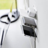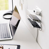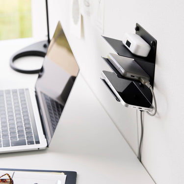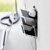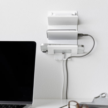 This rack can be easily installed on the wall using plasterboard pins that don't leave noticeable holes. It's perfect for use around your desk or in the living room to store items like smartphones, earphones, portable batteries, and gaming devices. It also comes in handy at your bedside for storing remote controls or glasses that you struggle to find a place for. With three tiers, it can hold multiple items and allows you to charge your devices while they're stored. The holder allows you to neatly organise your charging cables by hooking them in. It can also be installed using wood screws.