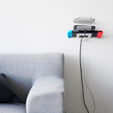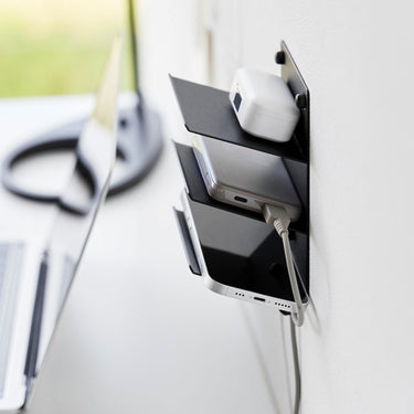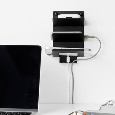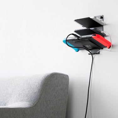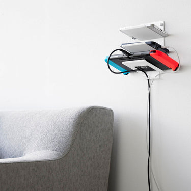 Easy to install on the wall! A handy 3-tier rack that allows you to store and charge your smartphone or gaming device.