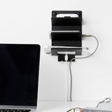 Hang your charging cables on the holder for storage. This allows you to neatly organise your wiring.