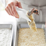 The grip is wide and easy to hold. The food won't slip easily, making it convenient for serving.