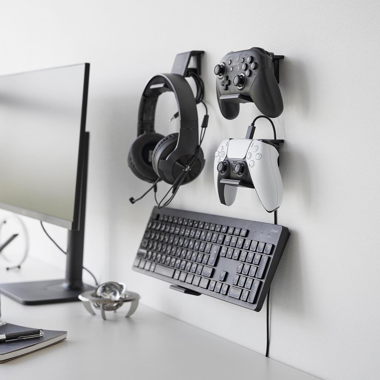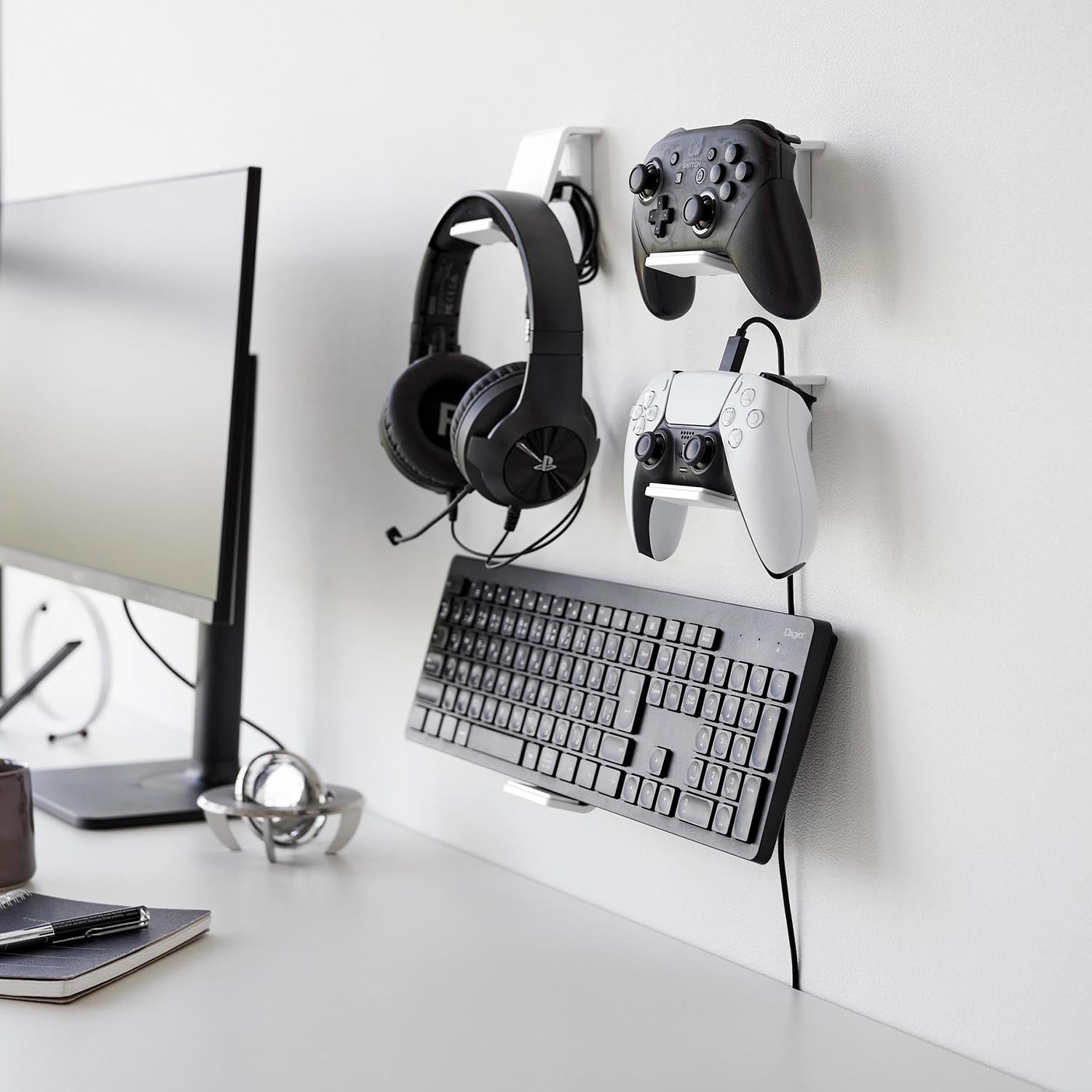 You can store your game controllers and headsets by suspending them on the walls around your TV or desk. They can be attached using plasterboard pins, which leave less noticeable holes in the wall. By suspending your items, cleaning your TV stand becomes a breeze. You can also hold charging cables, making every charging session smooth. Excess cable length can be stored on the included hooks.