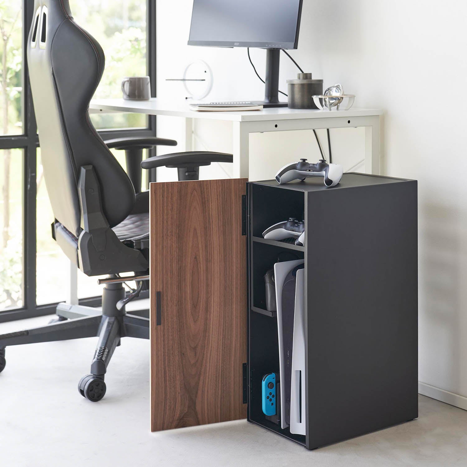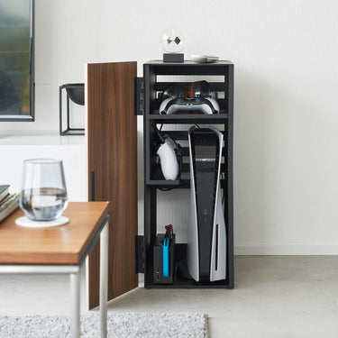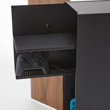 A functional rack that neatly stores and conceals your gaming console and controllers.