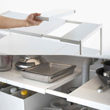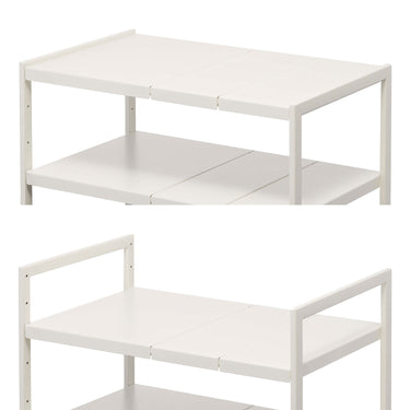 A sturdy, steel-made shelf that can be adjusted to fit the width of your space thanks to its extendable design, with a depth of 30cm.