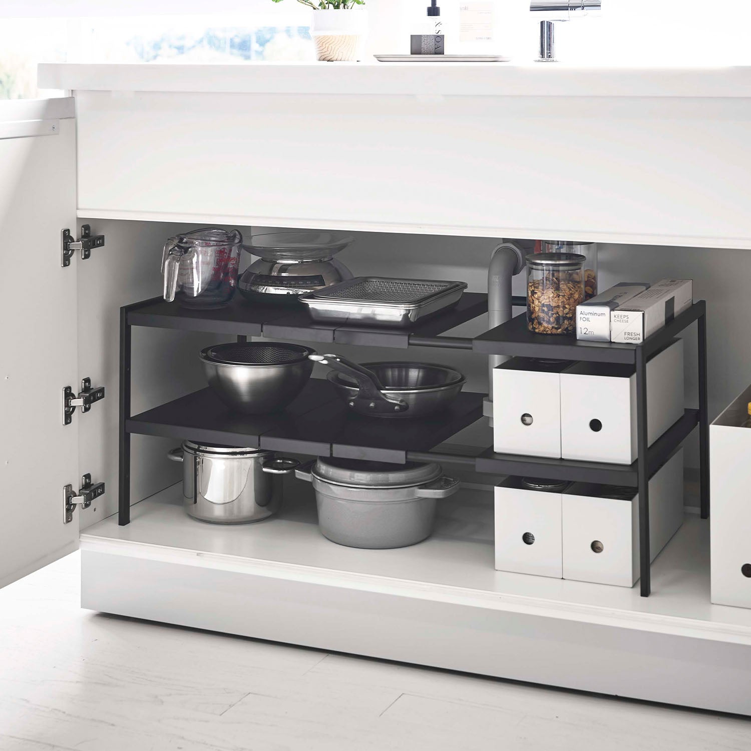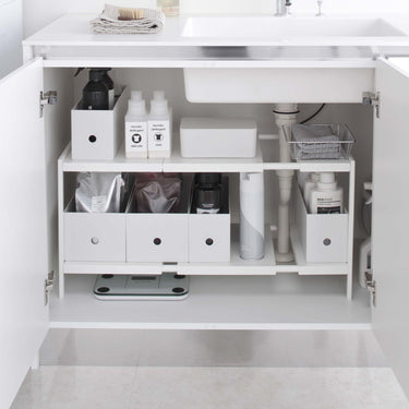 Perfectly fits under your sink or vanity, adjusting to the width (expands from 48 to 83cm)