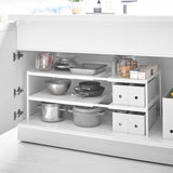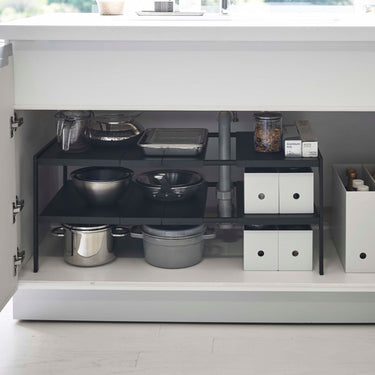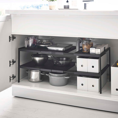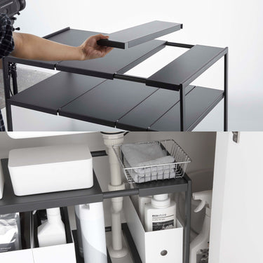 Perfectly fits under your sink or washbasin by adjusting the width (extends from 48 to 83cm)
