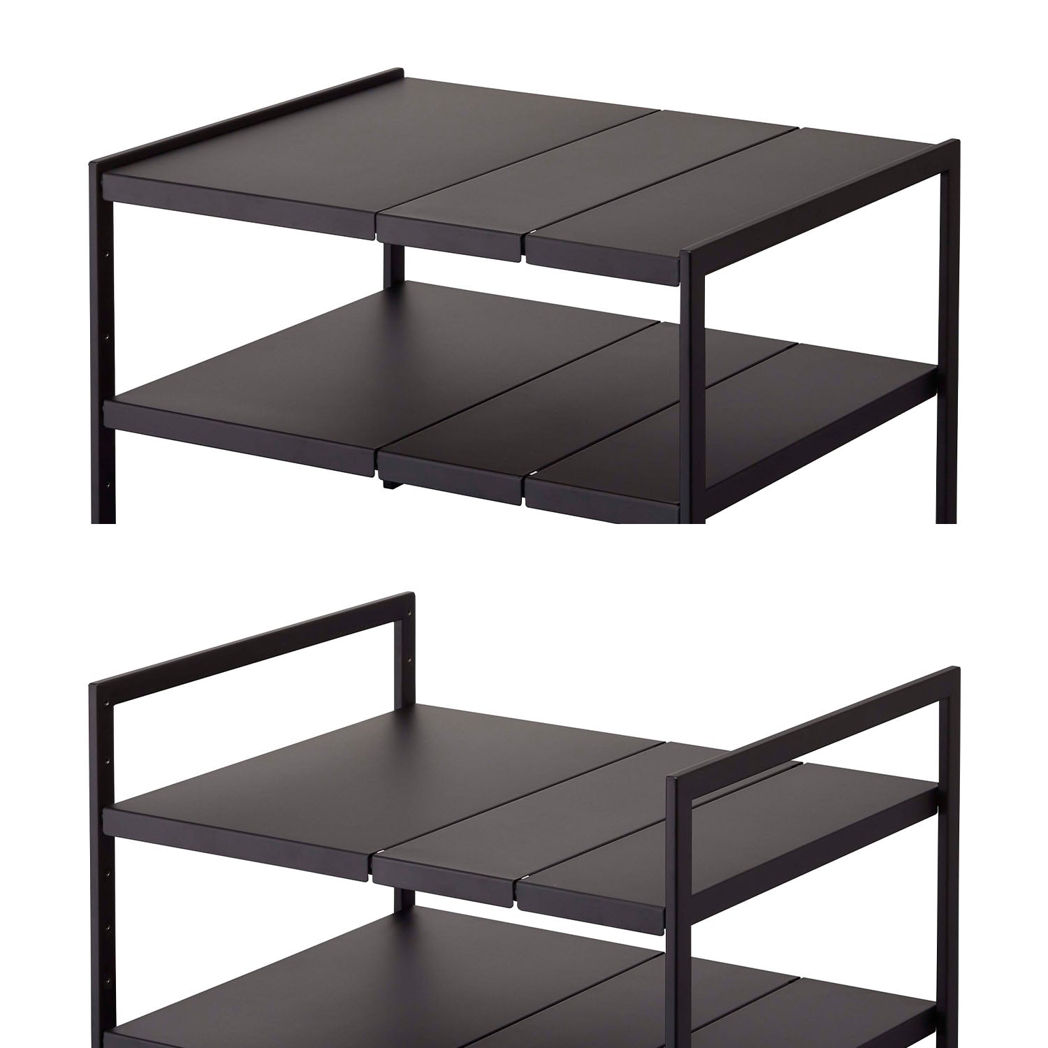 A sturdy steel extendable rack that can be adjusted to fit the width of your installation space