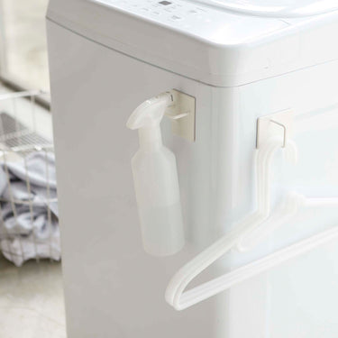 A set of two hooks that can be easily attached to washing machines and the like with magnets