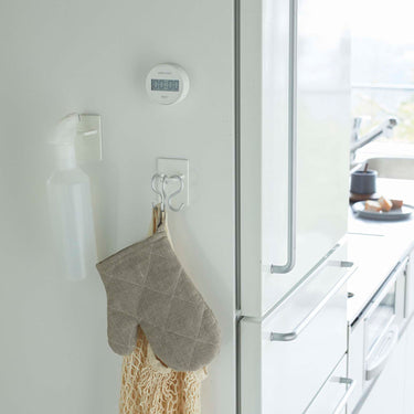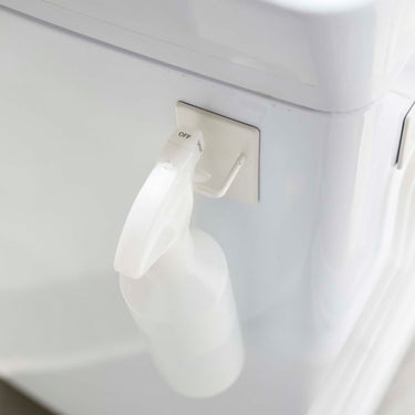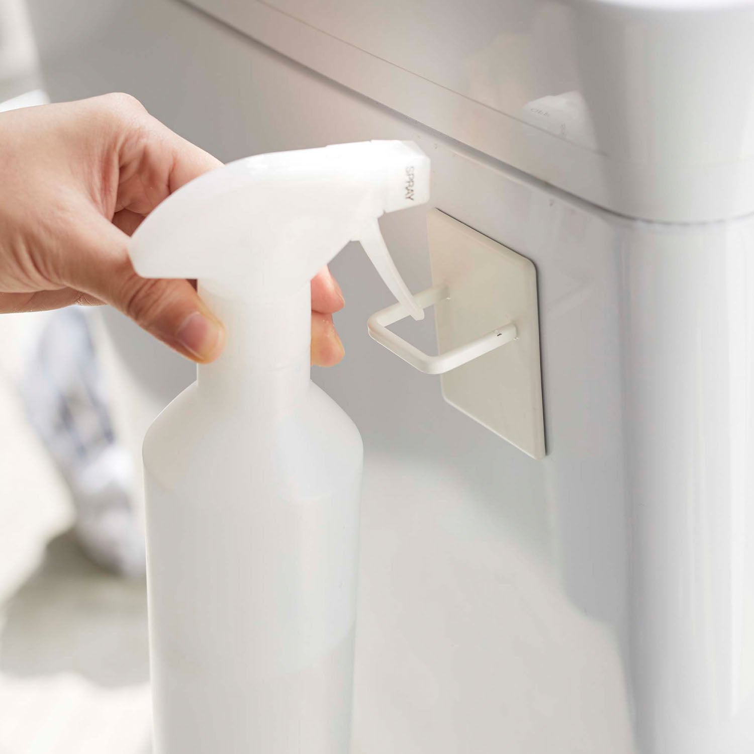 This is a magnetic spray hook that can be easily installed on washing machines, fridges, or wherever needed. It can be used in both vertical and horizontal directions, allowing you to adjust it according to the items you're storing. Its compact size makes it versatile for any location.