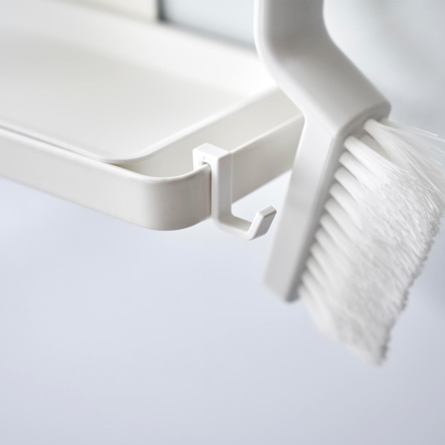 Easily attach this slim bath boot holder to your washing machine with magnets, providing a neat storage solution for bath boots that are hard to place. The included tray effectively catches any water dripping from the bath boots and can be removed for easy cleaning. The holder also comes with hooks, handy for hanging small items like brushes.
