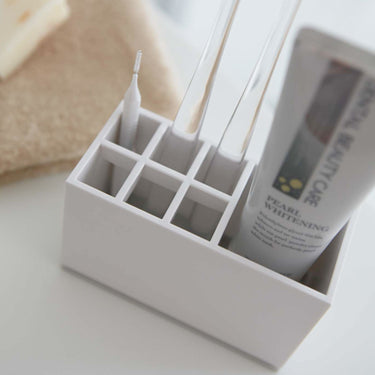 The fine compartments prevent stored items like toothbrushes from interfering with each other.