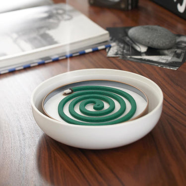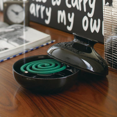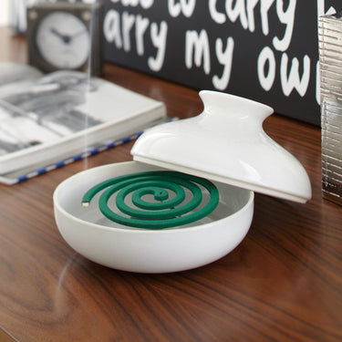 A stylish mosquito coil pot that blends seamlessly into your room like a piece of interior decor.