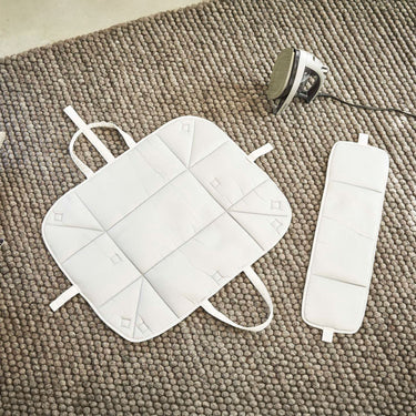 When unfolded, it becomes an ironing mat and a sleeve board.