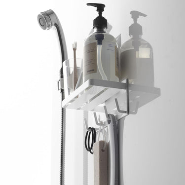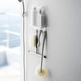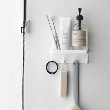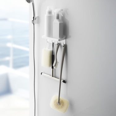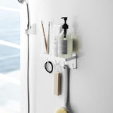 This rack is handy for storing dispenser bottles, as well as soap, toothbrushes, and tumblers. It features a grooved tray for efficient drainage and uses a rubber type magnet that is less likely to scratch your walls and won't rust. As it's magnetic, you can easily adjust the placement and install it wherever suits your preference.