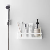 Useful for storing items like soap and toothbrushes, and also as an extra shelf for dispenser bottles.