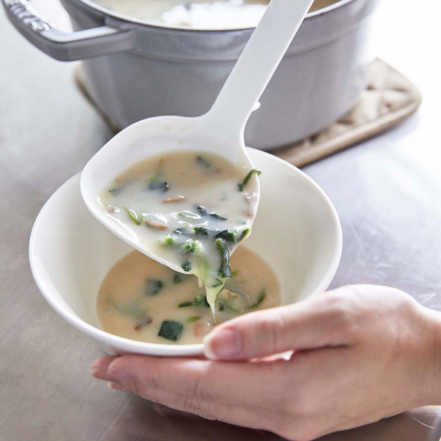 Fits perfectly to the bottom of the pot, allowing you to scoop up curry or stew without leaving any behind.