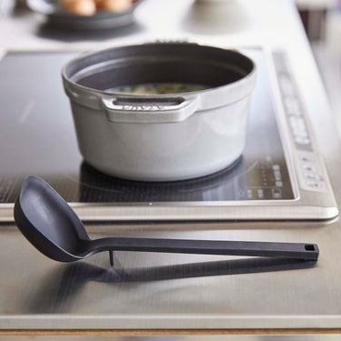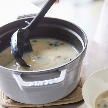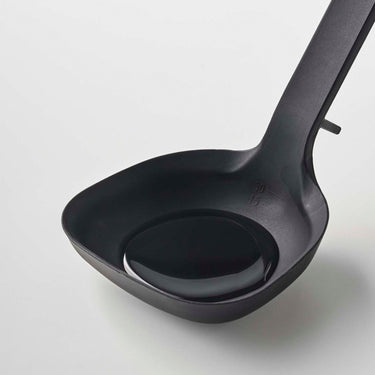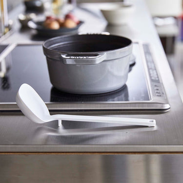 A ladle made of soft silicone material that won't scratch your pots.