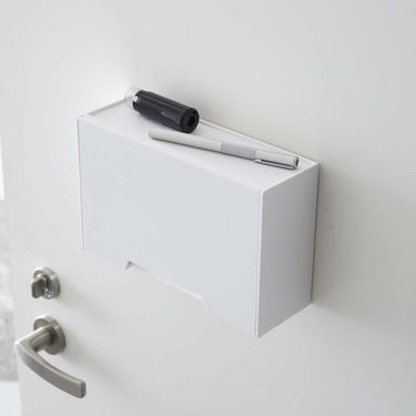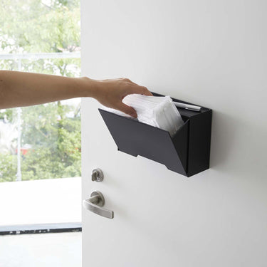 Easily attachable with a strong magnet. A mask holder that allows you to quickly grab a mask before heading out.