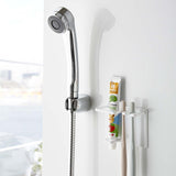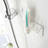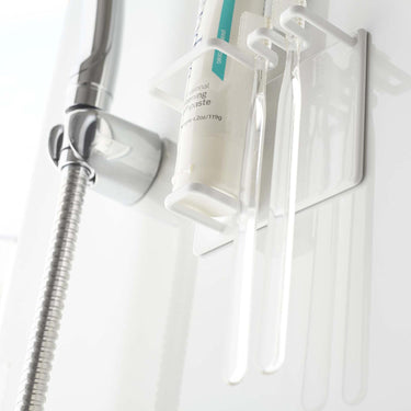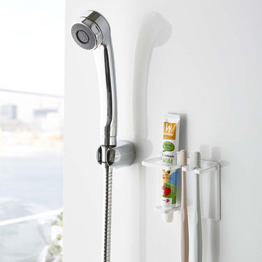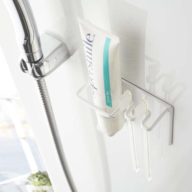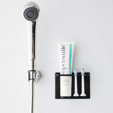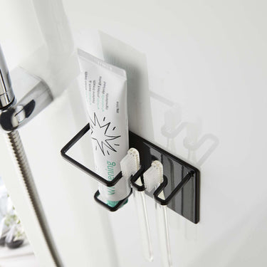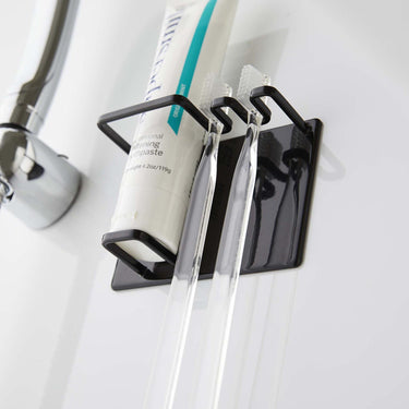 A magnetic holder that allows you to neatly store your toothbrush and toothpaste in your preferred location.