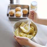 The mashed potato disperses to the outer edges, preventing build-up at the top of the masher and ensuring smooth cooking.