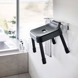 Comes with a plate that can be hung on a shower hook. Lightweight with aluminium legs that dry easily.