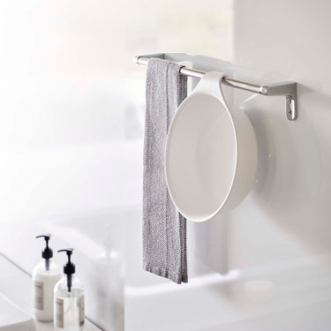 It can also be stored by hanging it on things like the towel bar in your bathroom.