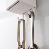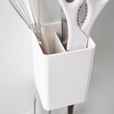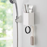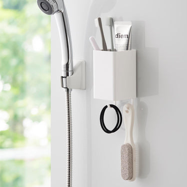 Simply hang it on the attached film hook. It can be mounted on glossy wall surfaces such as glass doors and tiles. It comes with a partition board that can be inserted either vertically or horizontally. You can attach the included hook to the drainage hole on the bottom and hang small items for storage.