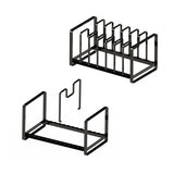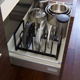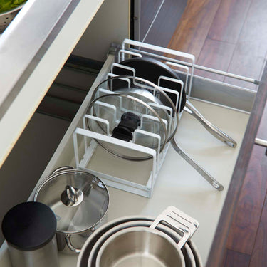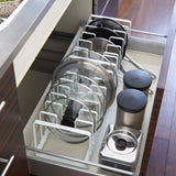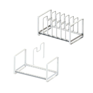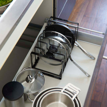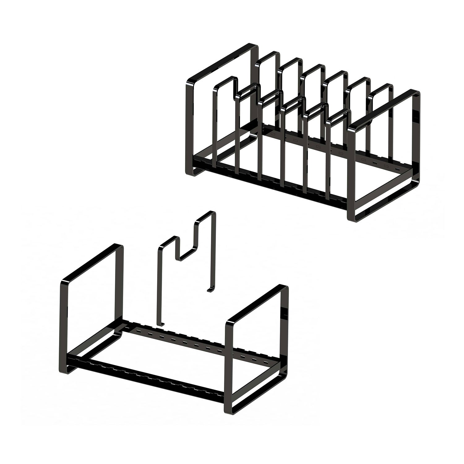 싱크대 아래에서 프라이팬, 냄비, 뚜껑을 세로로 보관할 수 있는 스탠드입니다.